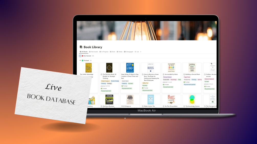 - A Notion template that has my most recent updates for all books that I've started & want to read. Includes a few instances of book notes & quotes.